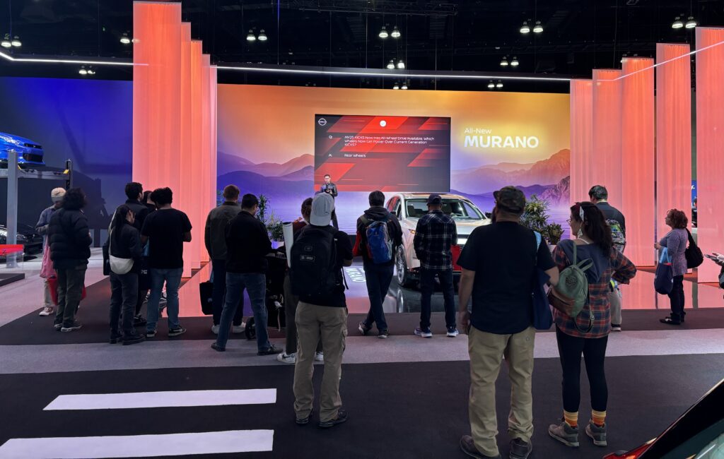 Nissan made waves with their dual showcase: a dynamic participation in the Electric Vehicle Track Ride Along and an engaging main display. At their booth, visitors tested their knowledge in a trivia game led by a lively host. Adding to the excitement, an onstage presenter unveiled the new Nissan Murano, captivating audiences with an in-depth look at this much-anticipated model.