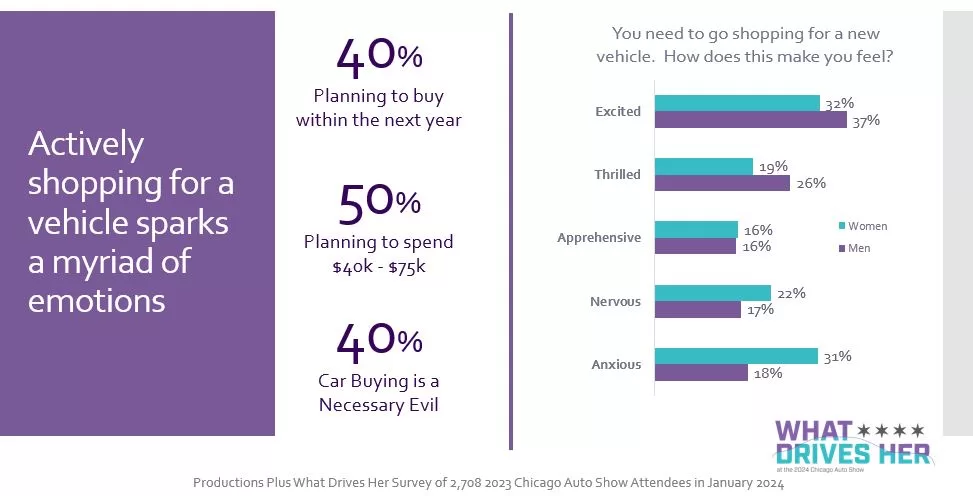 In the bustling world of automotive showcases, the Chicago Auto Show stands as a beacon for car enthusiasts and potential buyers alike. Productions Plus, with its sterling reputation as a leading talent and promotional agency, has recently ventured into an insightful exploration of the auto show’s impact on consumer behavior and purchase decisions. Spearheading this initiative, Amy Emmatty, our Chief Research Officer, unveiled compelling findings from the What Drives Her 2024 Survey to measure Chicago Auto Show consumer insights. The results? A resounding affirmation of the show’s significance in the automotive buying journey.